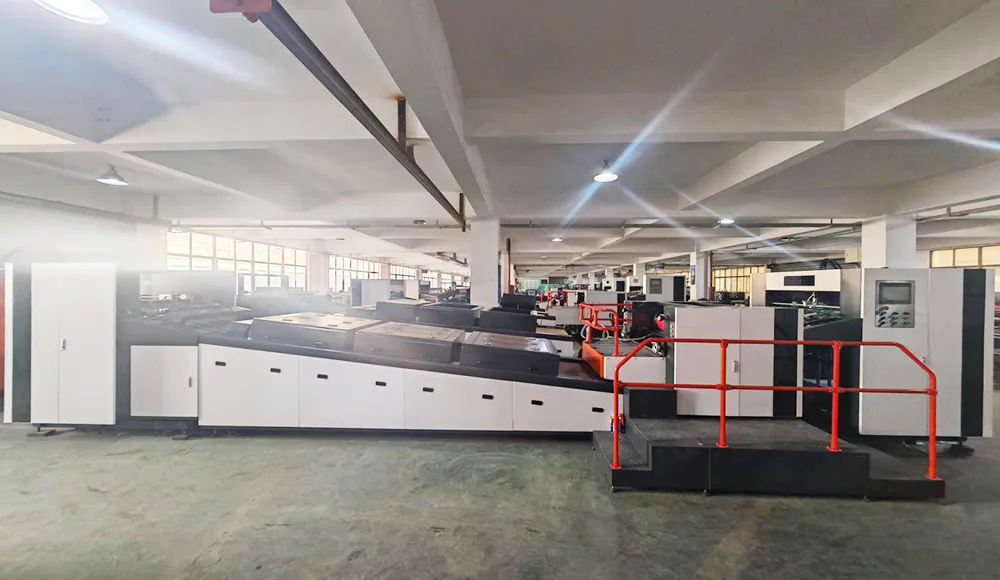 - UV kurutma ekipmanı, UV verniği hızla katılaştırabilen üç UV cıva lambasını kullanır.